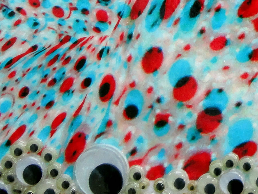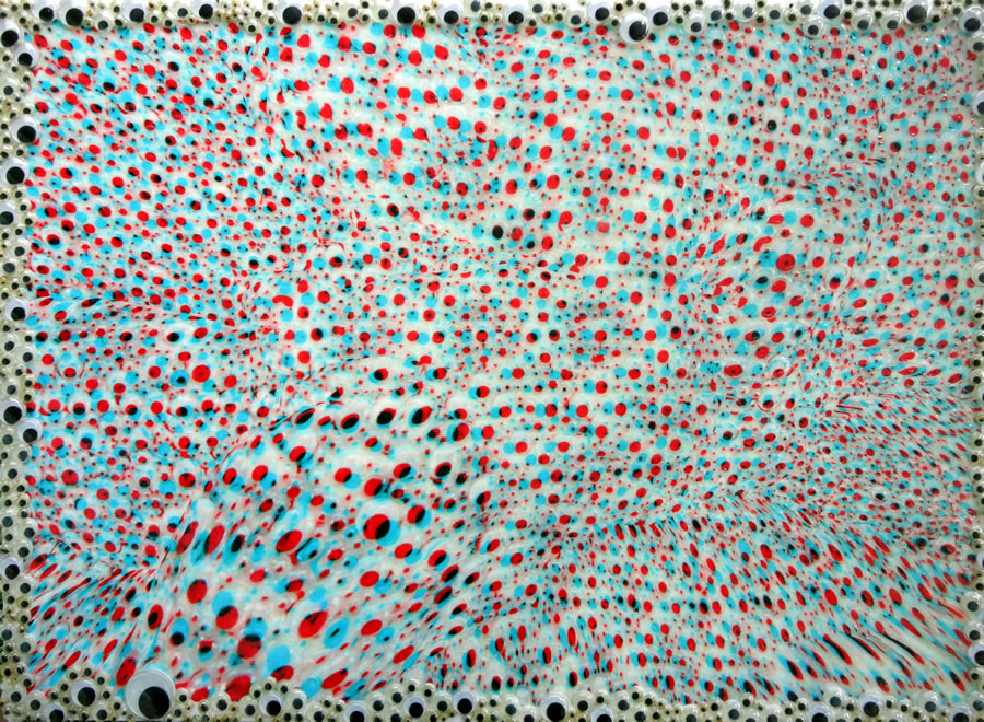Avec des yeux virés Stéréogramme hybride Assemblage, des yeux mobiles, peinture textile, UltraChrome K3 Inkjet 35 x 48 cm 2009